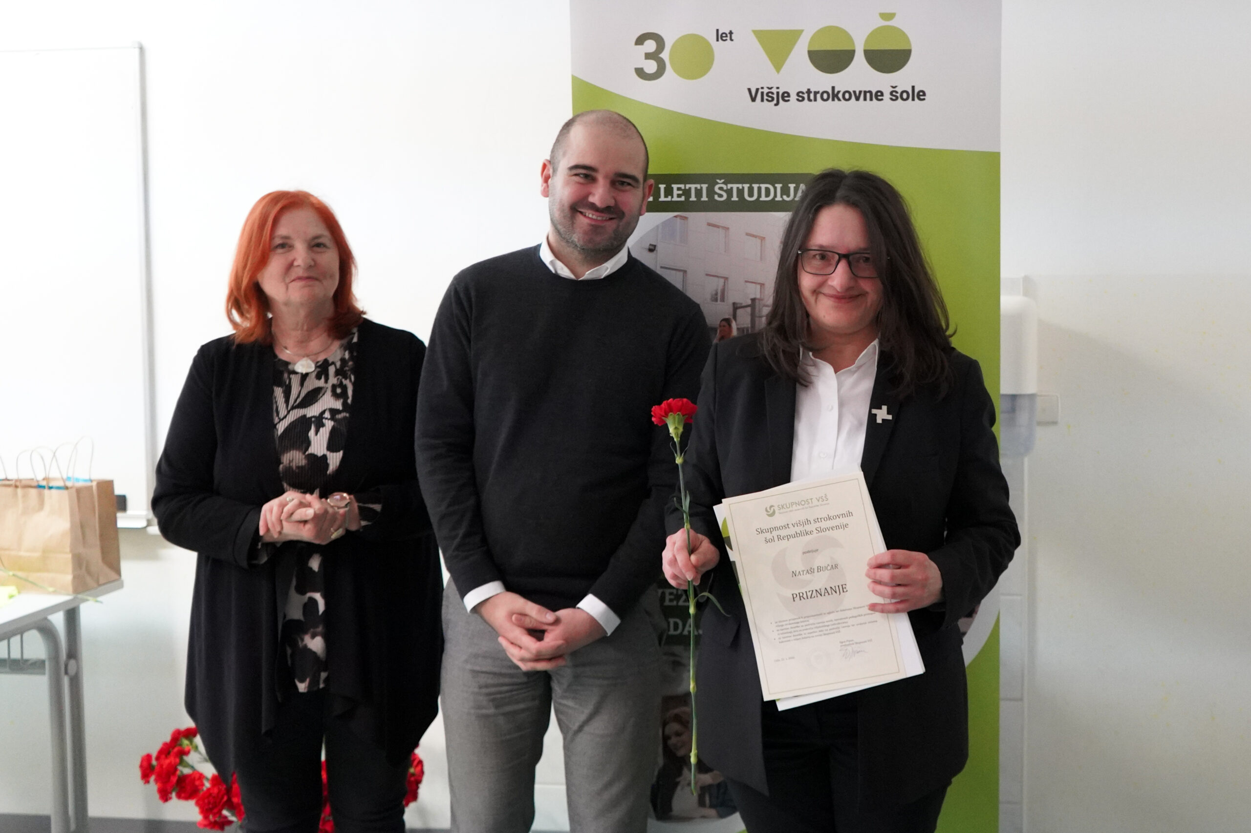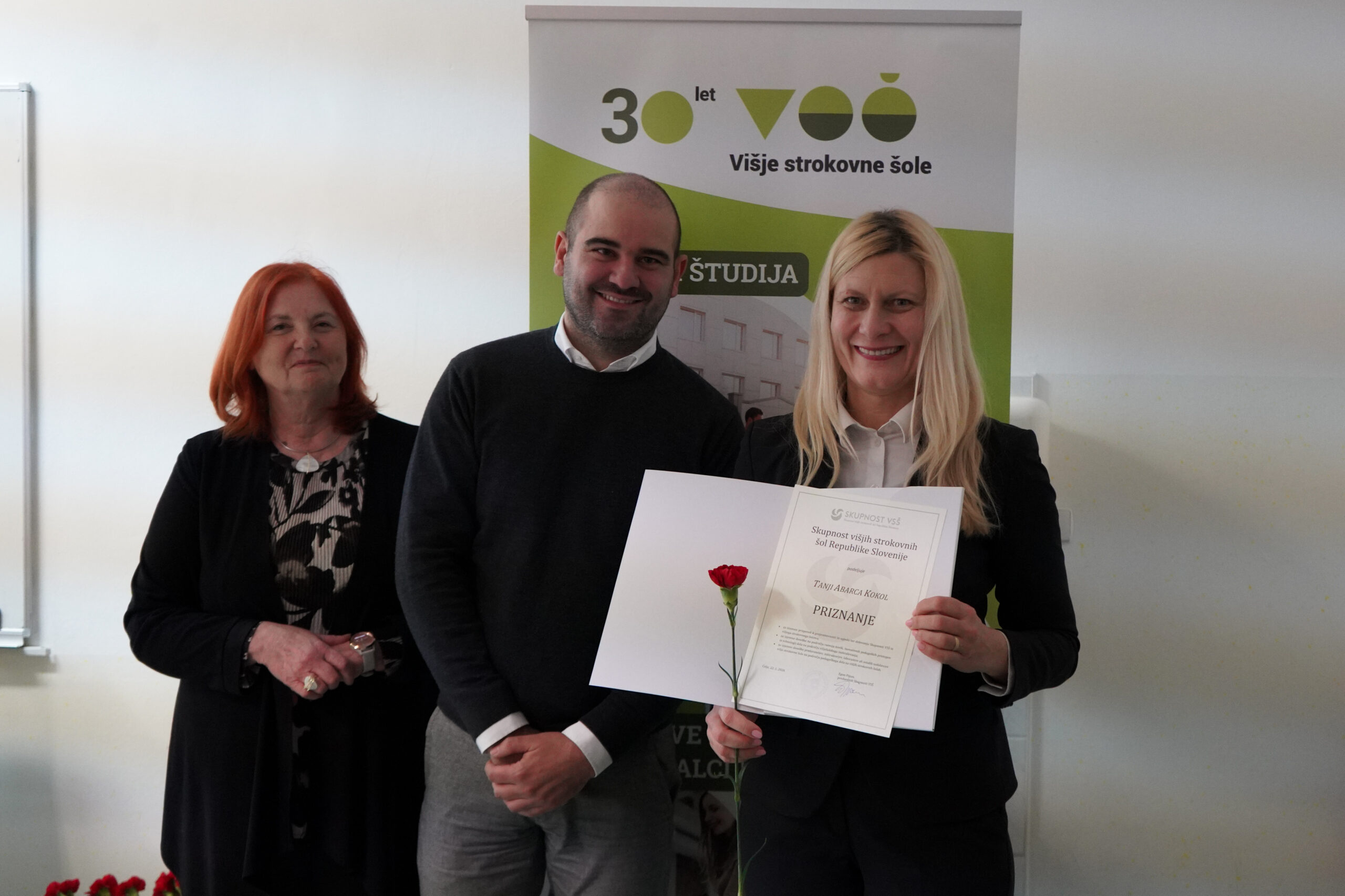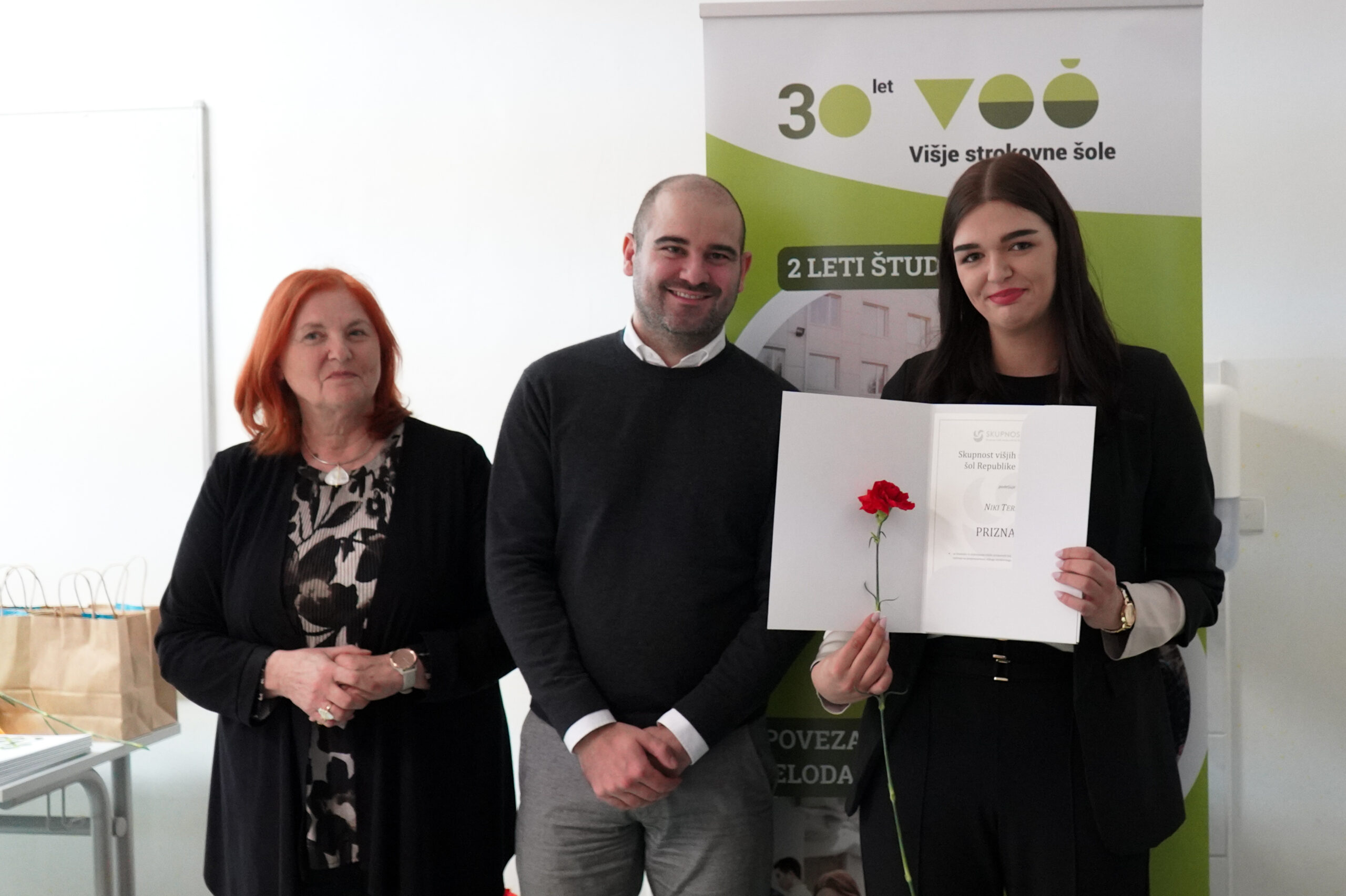 Zaključek konference je bil namenjen podelitvi priznanj Skupnosti višjih strokovnih šol za dolgoletno delo ter nagradam za najboljša diplomska dela. Priznanja Skupnosti VSŠ za 20 let višje strokovne šole smo podelili Šolskemu centru Ptuj, Višji strokovni šoli in Šolskemu centru Kranj, Višji strokovni šoli, priznanje Skupnosti VSŠ za 20 let ravnateljevanja pa je prejel Robert Harb, Šolski center Ptuj, Višja strokovna šola. Diplomo za odličnost je prejela Višja strokovna šola DOBA. Predstavljeni dosežki so znova pokazali, da višje strokovne šole ustvarjajo znanje, ki je uporabno, inovativno in tesno povezano z realnimi potrebami okolja.