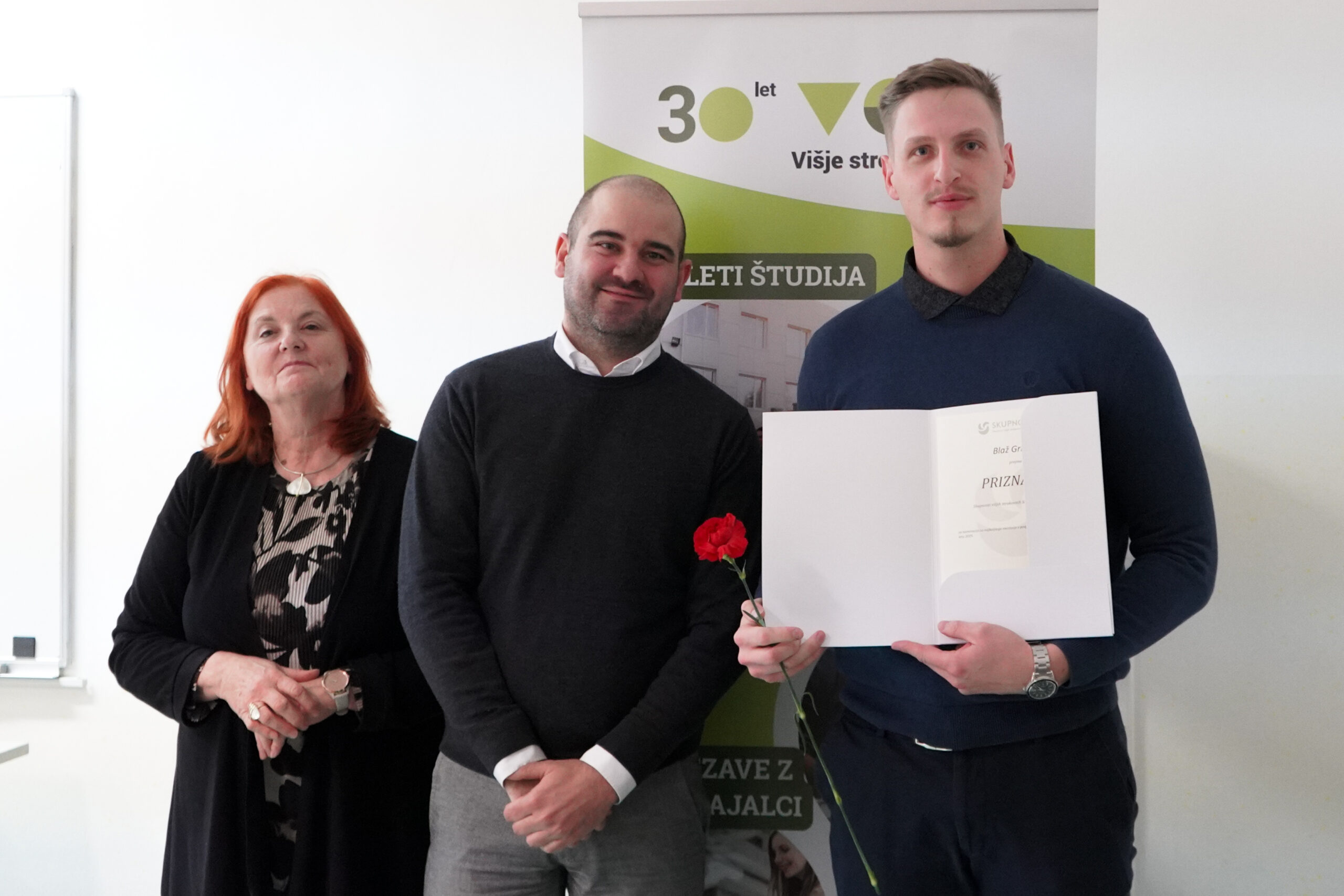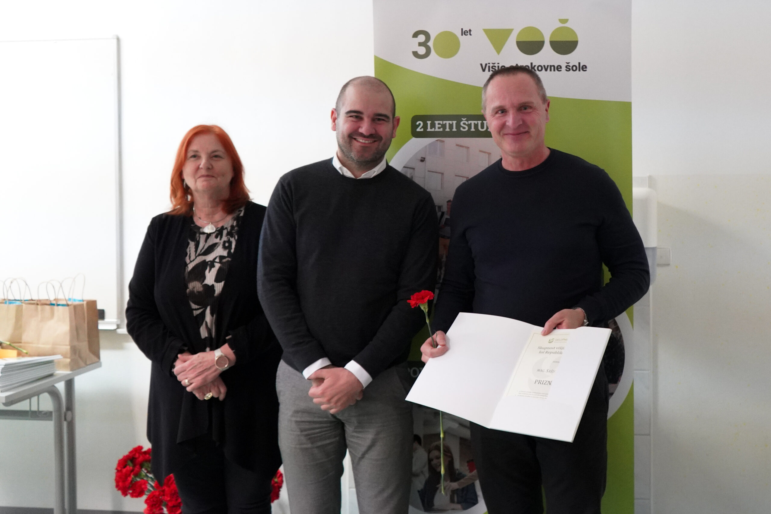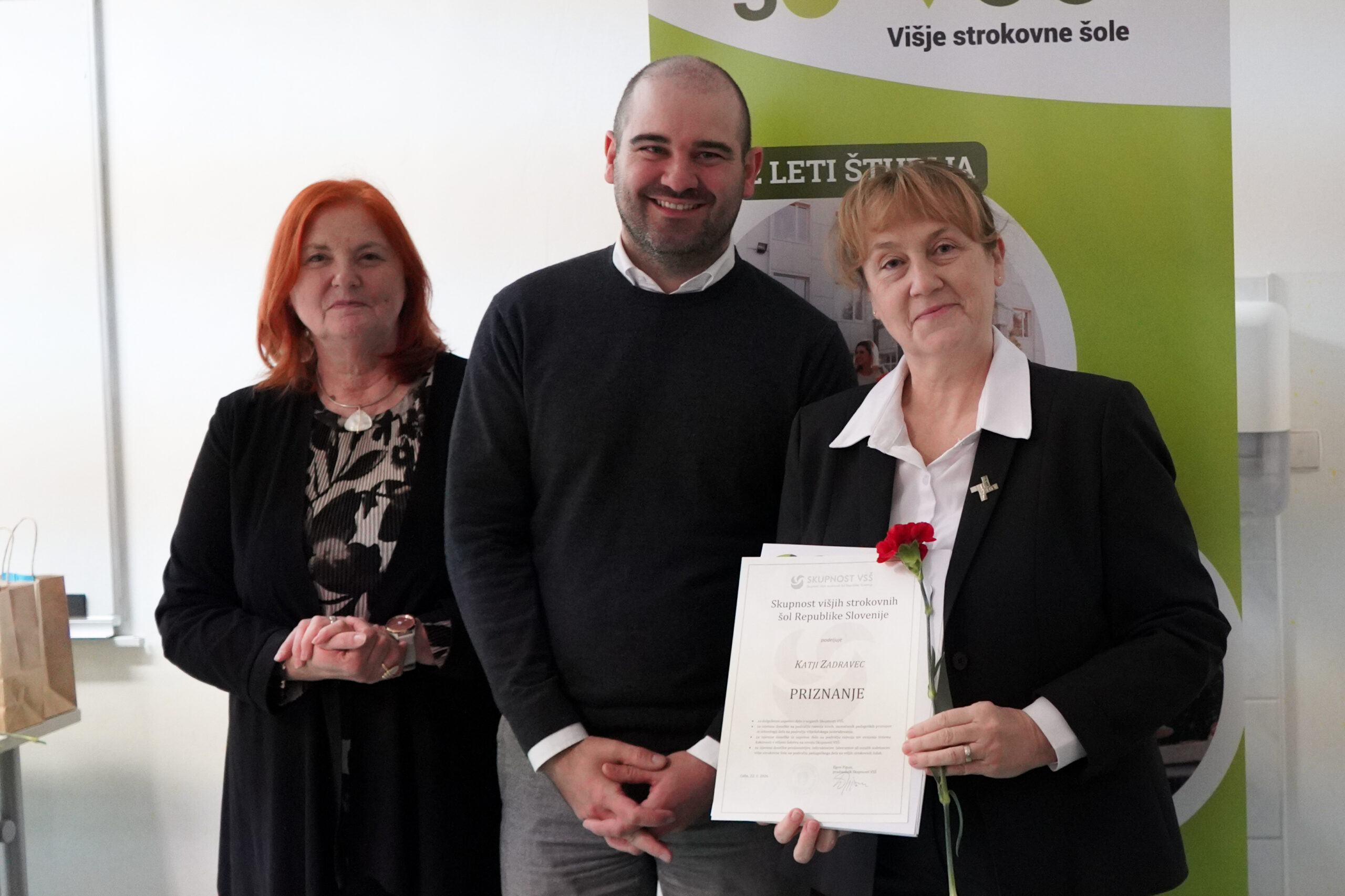 Zaključek konference je bil namenjen podelitvi priznanj Skupnosti višjih strokovnih šol za dolgoletno delo ter nagradam za najboljša diplomska dela. Priznanja Skupnosti VSŠ za 20 let višje strokovne šole smo podelili Šolskemu centru Ptuj, Višji strokovni šoli in Šolskemu centru Kranj, Višji strokovni šoli, priznanje Skupnosti VSŠ za 20 let ravnateljevanja pa je prejel Robert Harb, Šolski center Ptuj, Višja strokovna šola. Diplomo za odličnost je prejela Višja strokovna šola DOBA. Predstavljeni dosežki so znova pokazali, da višje strokovne šole ustvarjajo znanje, ki je uporabno, inovativno in tesno povezano z realnimi potrebami okolja.