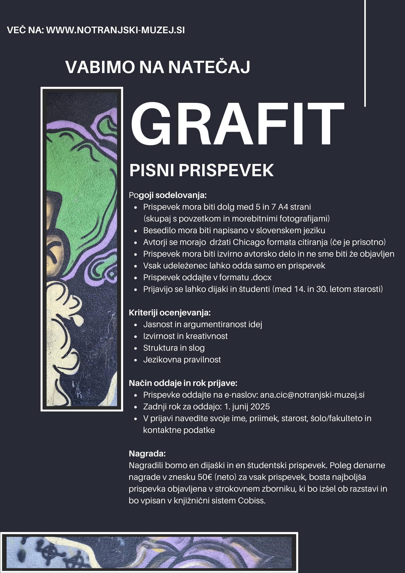 Na Notranjskem muzeju Postojna, razpisujejo natečaj za dijake in študente na [...]