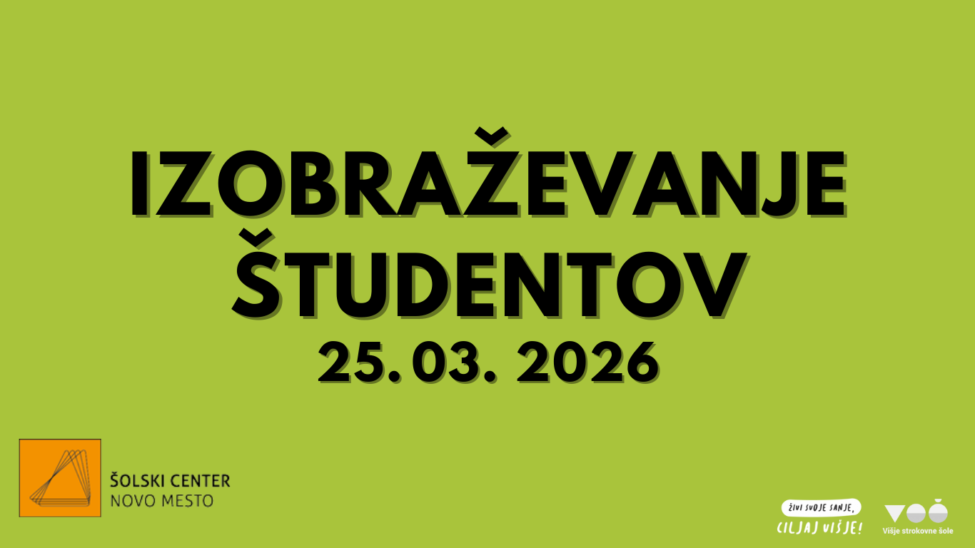 Karierni center Višje strokovne šole Šolskega centra Novo mesto vabi vse redne študente 2. letnika na dogodek KAM PO DIPLOMI 2026, ki bo v sredo, 25. marca 2026, ob 8. uri v predavalnici AP.1. Dogodek bo zajemal: sestanke po programih, uvodne nagovore, informacije o vstopu na trg dela, postopke za odprtje s.p., nasvete za pripravo diplome in študentsko tribuno. Udeležba je obvezna za vse študente 2. letnika, urniki pa bodo prilagojeni dogodku.