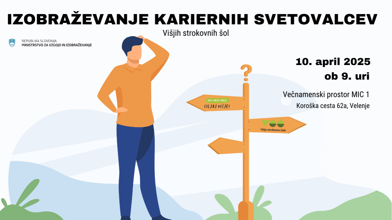 10. aprila med 9. in 13. uro bo na Medpodjetniškem izobraževalnem centru MIC, Koroška cesta 62a v Velenju, potekalo izobraževanja za karierne svetovalce višjih strokovnih šol.