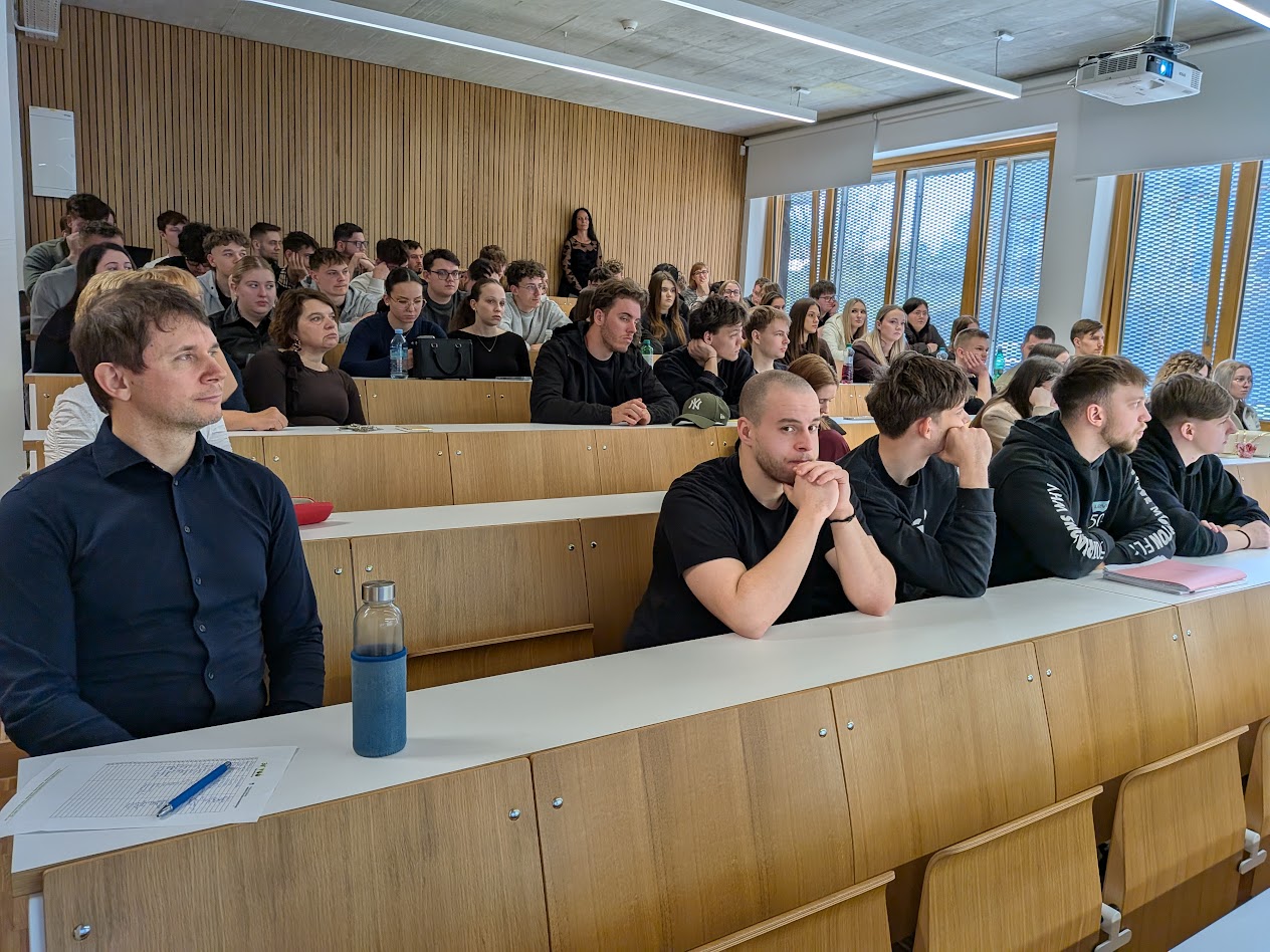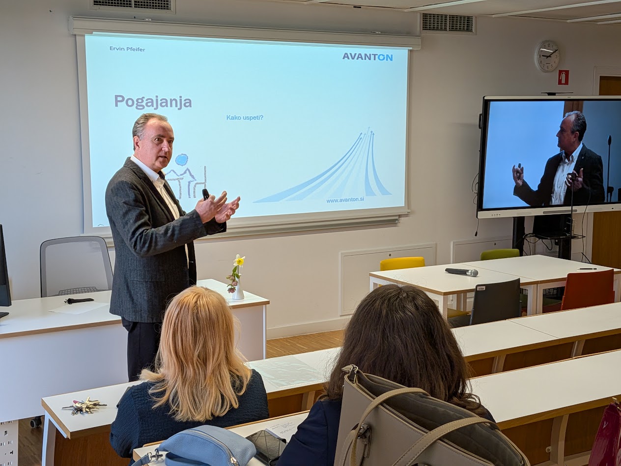 Dr. Pfeifer je s konkretnimi primeri iz prakse nazorno predstavil različne pogajalske taktike in pristope. Poseben poudarek je namenil pričakovanjem delodajalcev do mladih, ki vstopajo na trg dela, ter vplivu nebesedne komunikacije na uspešnost zaposlitvenega razgovora. Študenti so svoje znanje nadgradili tudi s praktično simulacijo zaposlitvenega razgovora, kjer so se preizkusili v vlogi kandidata in delodajalca ter razvijali veščine samozavestnega nastopa, argumentiranja in učinkovite komunikacije.