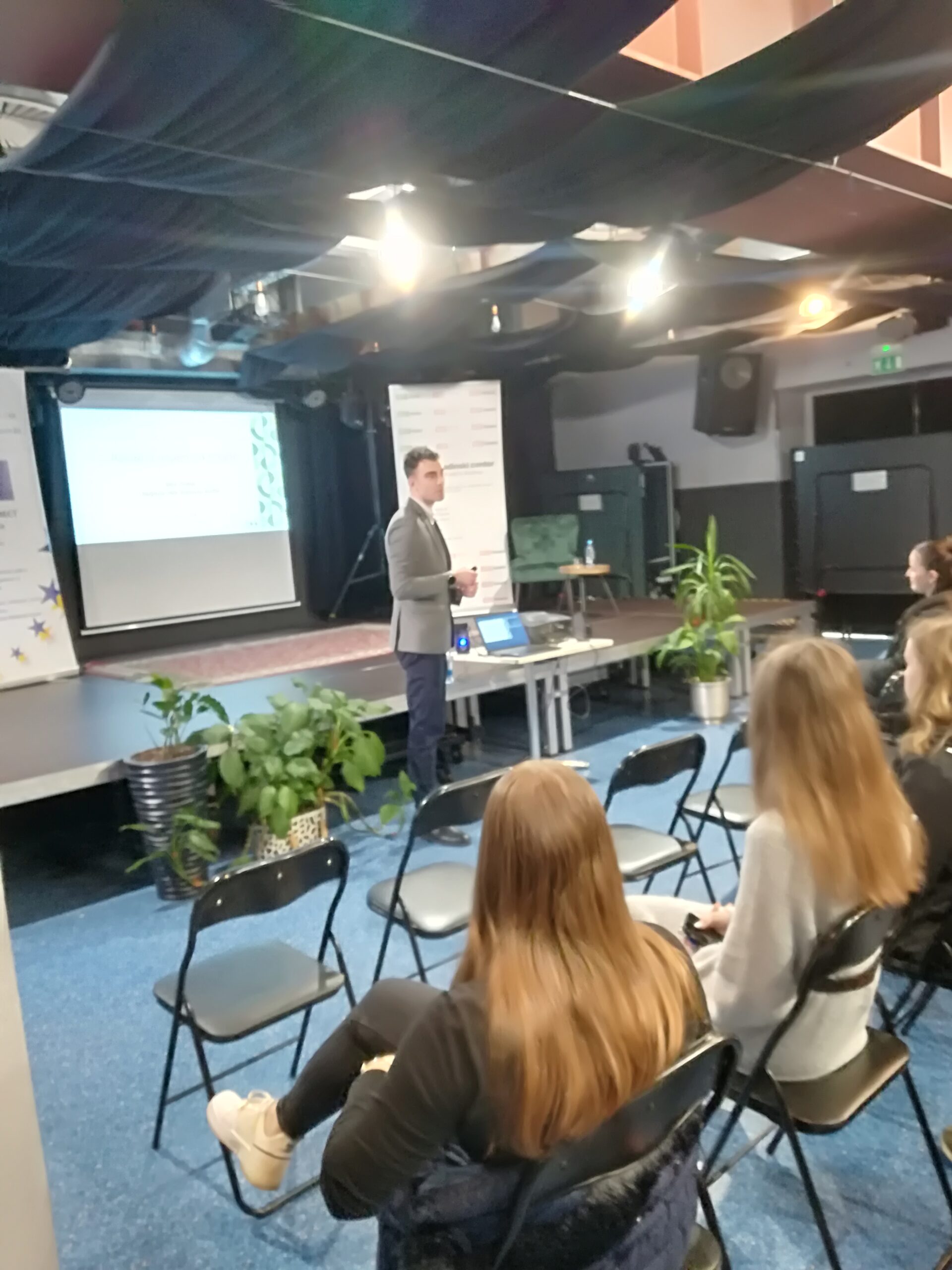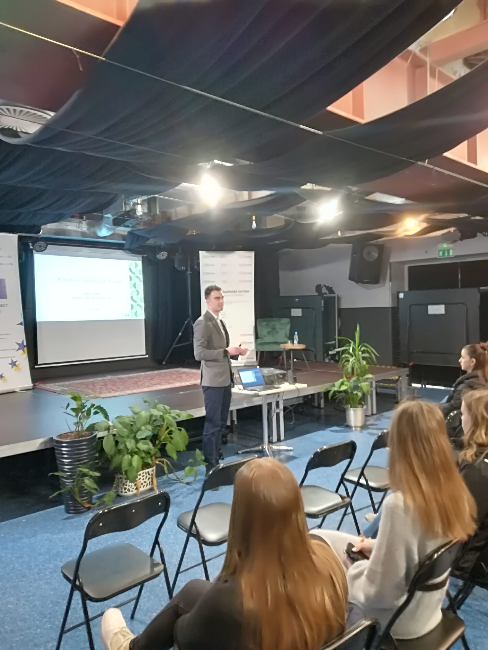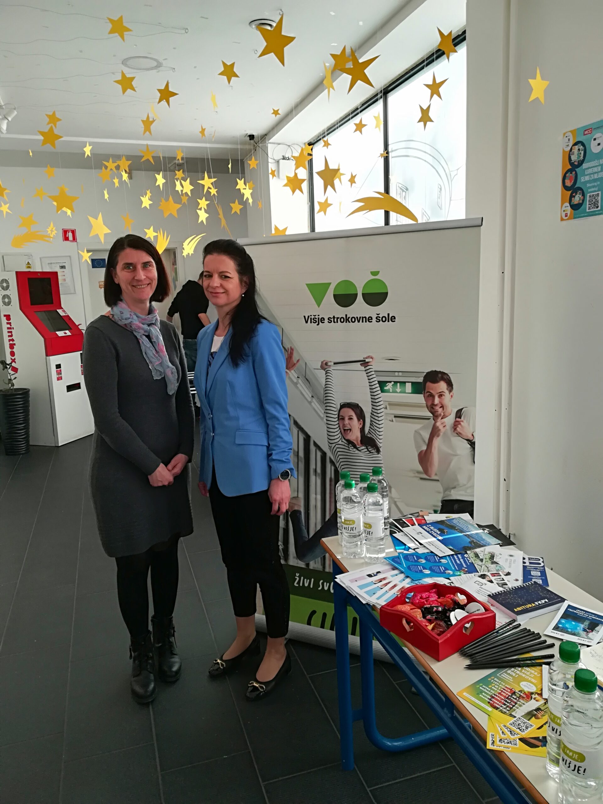 Poleg predstavitve orodja Europass, omrežja EURES in delovanja ZRSZ je bil letos poseben poudarek namenjen Skupnosti višjih strokovnih šol Republike Slovenije. Miha Zimšek, generalni sekretar, je na slikovit način predstavil bogato ponudbo višješolskih programov, ki so usmerjeni v praktično znanje in veščine, ki jih delodajalci iščejo. Po kratkem odmoru so se mladi lahko udeležili pogovora s predstavnicama dveh uspešnih podjetij. Nikolina Cizej iz podjetja CETIS d. d. in Petra Melanšek iz družinskega podjetja Vivapen sta poudarili pomen ključnih kompetenc, ki jih delodajalci iščejo pri zaposlenih, ter izpostavili pomen medgeneracijskega sodelovanja na delovnem mestu.