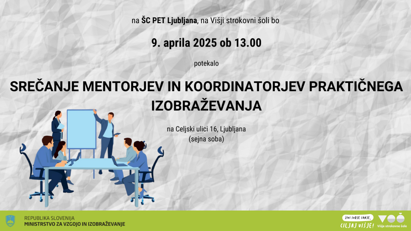 Višja strokovna šola, ŠC PET Ljubljana organizira srečanje mentorjev in [...]