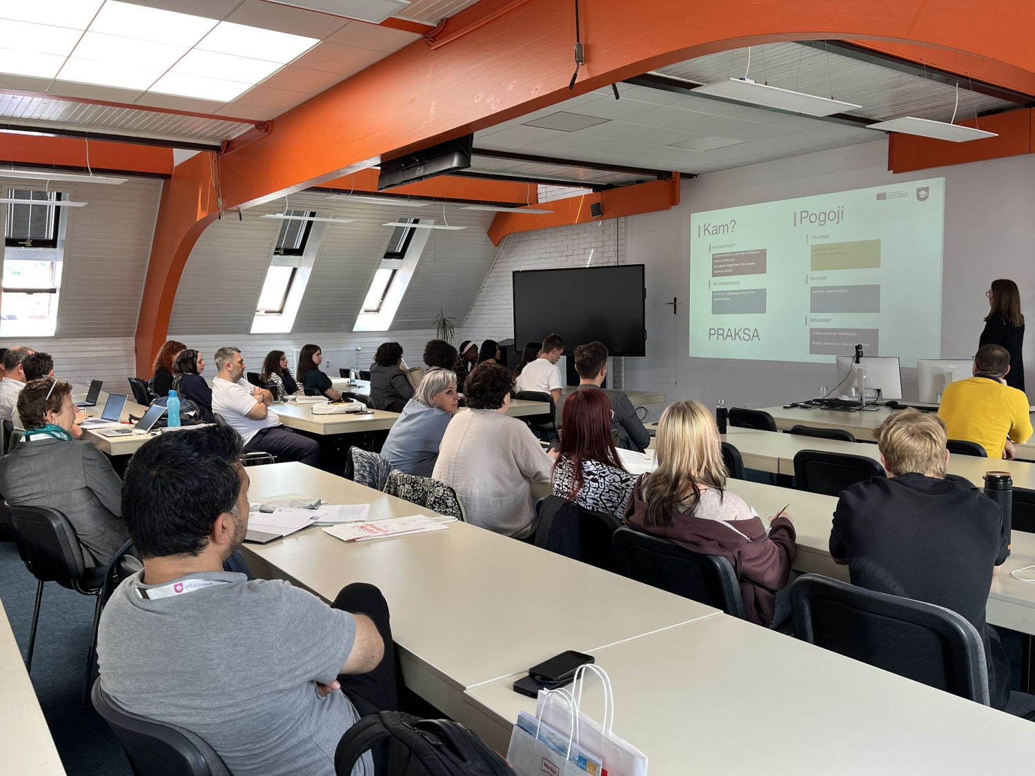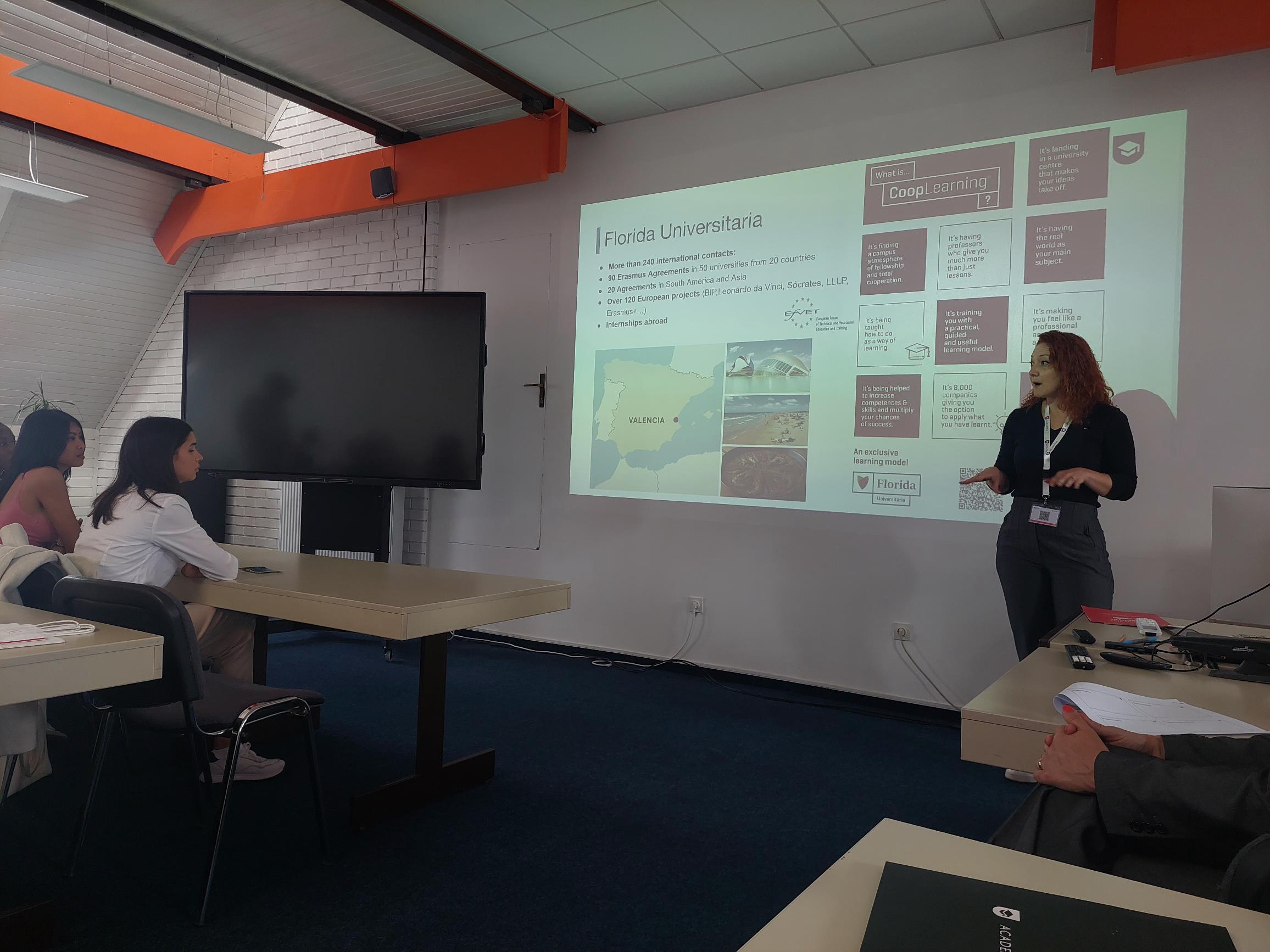 V ponedeljek, 26. maja 2025, smo se udeležili dogodka imenovan Mednarodni karierni koktajl, ki ga je organizirala Višja strokovna šola Academia v sodelovanju s Skupnostjo višjih strokovnih šol Republike Slovenije in Ministrstvom za vzgojo in izobraževanje Namenjen je bil študentom, ki razmišljajo o nadaljevanju študija ali opravljanju prakse v tujini. Dogodek je potekal v sproščenem, medkulturno bogatem vzdušju in združil 34 udeležencev – študente ter predstavnike visokošolskih institucij iz desetih držav (Avstrije, Belgije, Hrvaške, Litve, Španije, Srbije, Turčije, Brazilije, Maroka in Jordanije). Udeleženci so skozi kratke predstavitve spoznavali možnosti Erasmus+ mobilnosti (študij, praksa, kombinirani programi), višine štipendij, dodatke za študente z manj priložnostmi in konkretne priložnosti, ki jih ponujajo partnerske institucije. Dogodek so obogatila tudi osebna pričevanja in izkušnje študentov ter mednarodnih gostov, zaključil pa se je z mreženjem ob prigrizkih, kjer so se stkala nova poznanstva in morebitna sodelovanja.