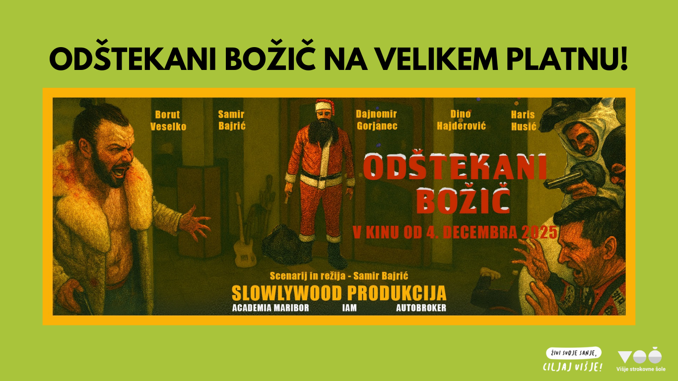 Odštekani božič je prišel v slovenske kinematografe, pri njegovem nastanku pa sta sodelovali Višja strokovna šola Academia in Inštitut in akademija za multimedije, Višja šola za multimedije. Na projektu je sodelovalo več študentov, diplomantov in predavateljev, kar izpostavlja visoko raven strokovnega znanja in praktičnih izkušenj, ki ju šoli ponujata. Film je nastal pod režijo našega inštruktorja Samirja Bajrića, gledalce pa popelje skozi sedem zgodb, sedem resnic in en popolnoma odštekan božič v prepoznavnem slowlywoodskem slogu. V kinematografih je na voljo od 4. decembra dalje, in sicer v Mariboxu v Mariboru ter Odiseji v Ljubljani. Napovednik in več informacij je na voljo TUKAJ. Vabljeni, da podprete ustvarjalce in si film ogledate na velikem platnu.