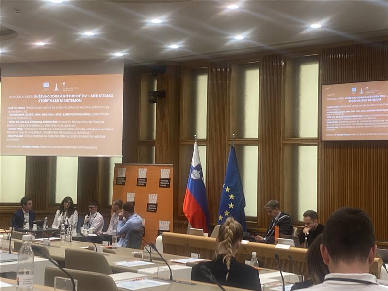 Okrogla miza o duševnem zdravju študentov je razkrila  trende, ki zahtevajo našo pozornost. Matej Vinko (NIJZ) je poudaril, da se študenti pogosto soočajo z zmernimi težavami, ki so zelo razširjene, pri čemer se je delež študentov s tovrstnimi težavami skoraj podvojil. Kljub temu je prisotna nizka stopnja iskanja pomoči. Aleksandra Jeličić (Zdravstveni dom za študente UL) je poudarila pomen preventive, saj se je število preventivnih obiskov zmanjšalo za 60 %. Potrebno bi bilo večje promoviranje in spodbujanje študentov k iskanju pomoči. Prof. dr. Mojca Zvezdana Dernovšek (Ministrstvo za zdravje) je opozorila na sistemsko stigmo in težave s kadri v 19 centrih za duševno zdravje za otroke in mladostnike, kjer študenti pogosto “padejo ven”, kljub odobrenim sredstvom, ki jih ne morejo porabiti. Simon Fridl (ŠOS) in Deni Poljak (Zveza študentov medicine Slovenije) sta izpostavila počasnost administracije in pomanjkanje sistemske podpore. Poljak je dodal, da med mladimi še vedno prevladuje prepričanje, da je iskanje pomoči znak šibkosti, kar kaže na preoblikovano stigmo.