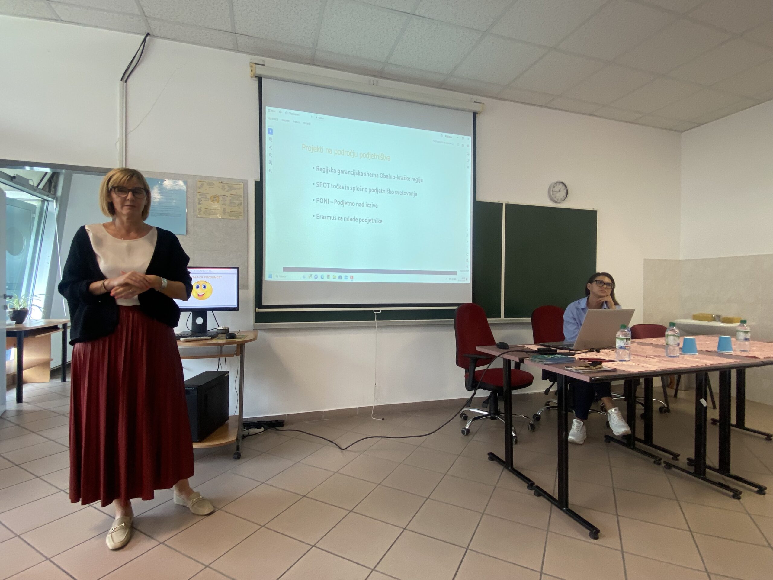 Ob zaključku so sledila predavanja Zavoda za zaposlovanje in Regionalne razvojne agencije Koper, ki je izpostavila dva projekta PONI in Erasmus za mlade podjetnike. Sledilo je neformalno druženje in mreženje.