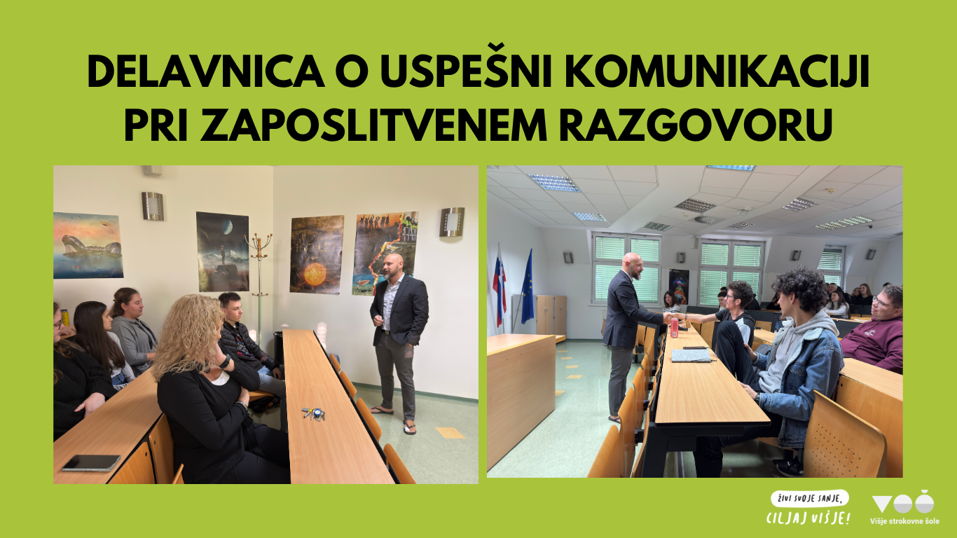 Na Ekonomski šoli Novo mesto, Višji strokovni šoli, je v okviru Kariernega centra potekala delavnica, ki jo je vodil Aleksej Metelko, strokovnjak za osebno prodajo, komunikacijo in intuicijo v osebnem ter poslovnem svetu. Delavnica je bila namenjena razvoju komunikacijskih veščin, ključnih pri iskanju zaposlitve in predstavitvi kandidata delodajalcu. Udeleženci so spoznali pomen prvega vtisa, aktivnega [...]