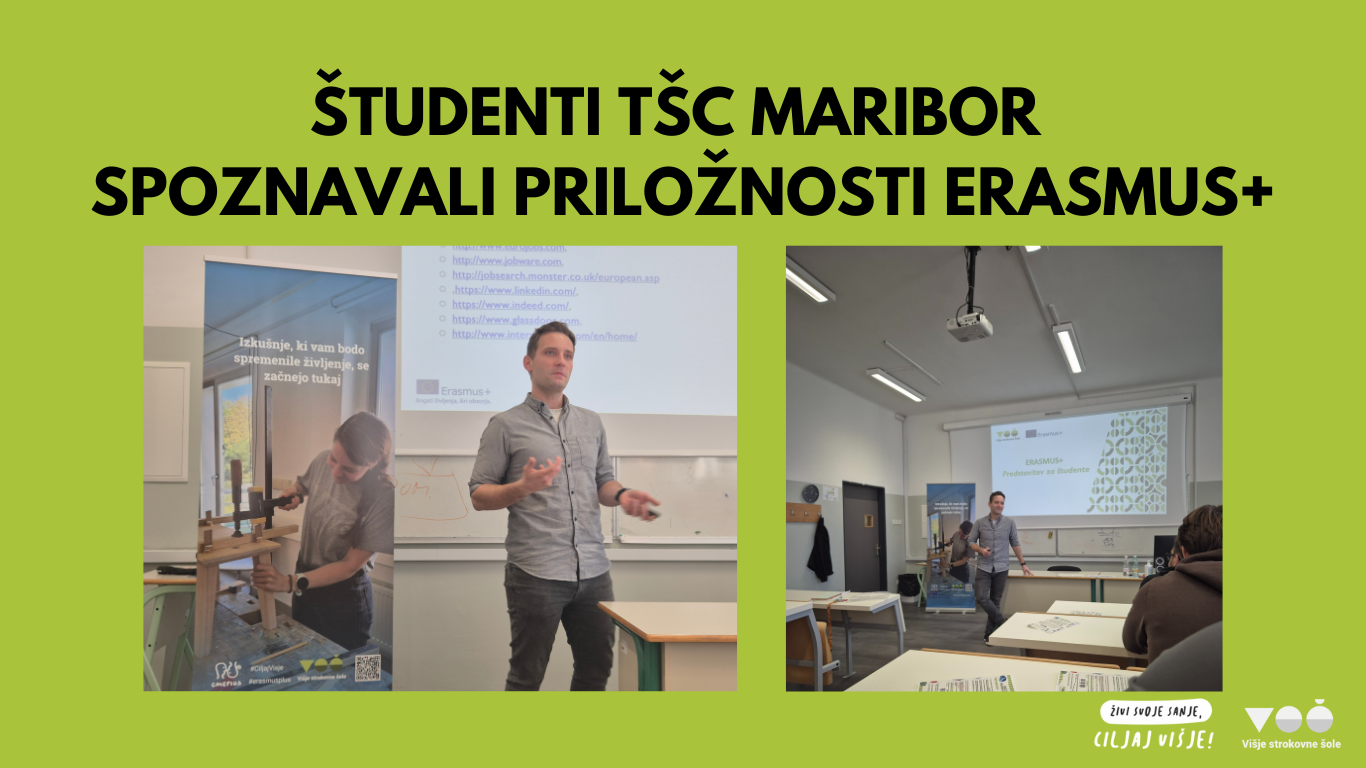 20. novembra 2025 smo se na povabilo koordinatorice mobilnosti ge. Petre Žunković udeležili predstavitve programa Erasmus+ na Višji strokovni šoli TŠC Maribor. Študentom smo predstavili priložnosti, ki jih ponuja konzorcij Skupnosti VSŠ, ter pojasnili postopke prijave, pripravo dokumentacije in napotke za uspešno predstavitev delodajalcem. Dogodek so obogatili študenti TŠC Maribor, ki so delili izkušnje s [...]