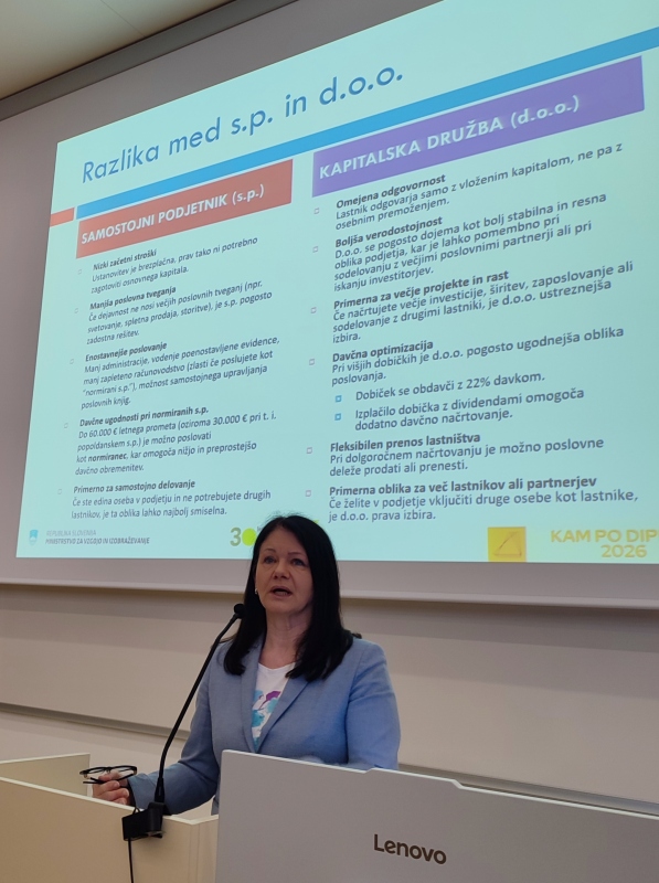 Poseben poudarek je bil namenjen podjetništvu. Ob podpori Območna obrtno-podjetniška zbornica Novo mesto so študenti spoznali postopek odprtja samostojnega podjetja ter pomen strateškega pristopa in osebne angažiranosti.