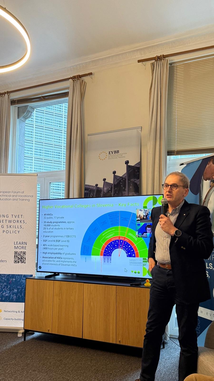 V ospredju je bilo tudi vprašanje upravljanja sistemov poklicnega in strokovnega izobraževanja, njihovega financiranja ter partnerstev z gospodarstvom na nacionalni in evropski ravni. V tem delu dogodka je mag. Igor Hanc v imenu Skupnosti višjih strokovnih šol predstavil značilnosti slovenskega višjega strokovnega šolstva, njegovo umeščenost v terciarni izobraževalni sistem ter ključne izzive, s katerimi se sistem sooča.