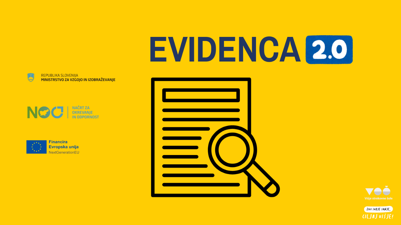 Projekt Vzpostavitev sistema spremljanja zaposljivosti diplomantov poklicnega in strokovnega izobraževanja bo omogočil vzpostavitev enotnega informacijskega sistema za višješolske zavode. Nova aplikacija Evidenca 2.0 bo nadomestila obstoječo aplikacijo in bo omogočila digitalizacijo pedagoškega procesa, zagotovila ustrezno informacijsko in komunikacijsko infrastrukturo ter omogočila digitalizacijo vodenja višješolskih zavodov. Naloge Skupnosti VSŠ v projektu bodo vezane na sodelovanje z ministrstvom, sodelovanje z organi nadzora in zunanjimi razvijalci aplikacije Evidenca 2.0, sodelovanje z deležniki pri testiranju aplikacije tekom razvoja, pripravo poročil z naborom ugotovljenih napak, predlogov, izboljšav aplikacije, popis zavodov, ki bodo uporabljali Evidenco 2.0. V projektu bomo vseskozi skrbeli za promocijske aktivnosti in večjo prepoznavnost aplikacije Evidenca 2.0.